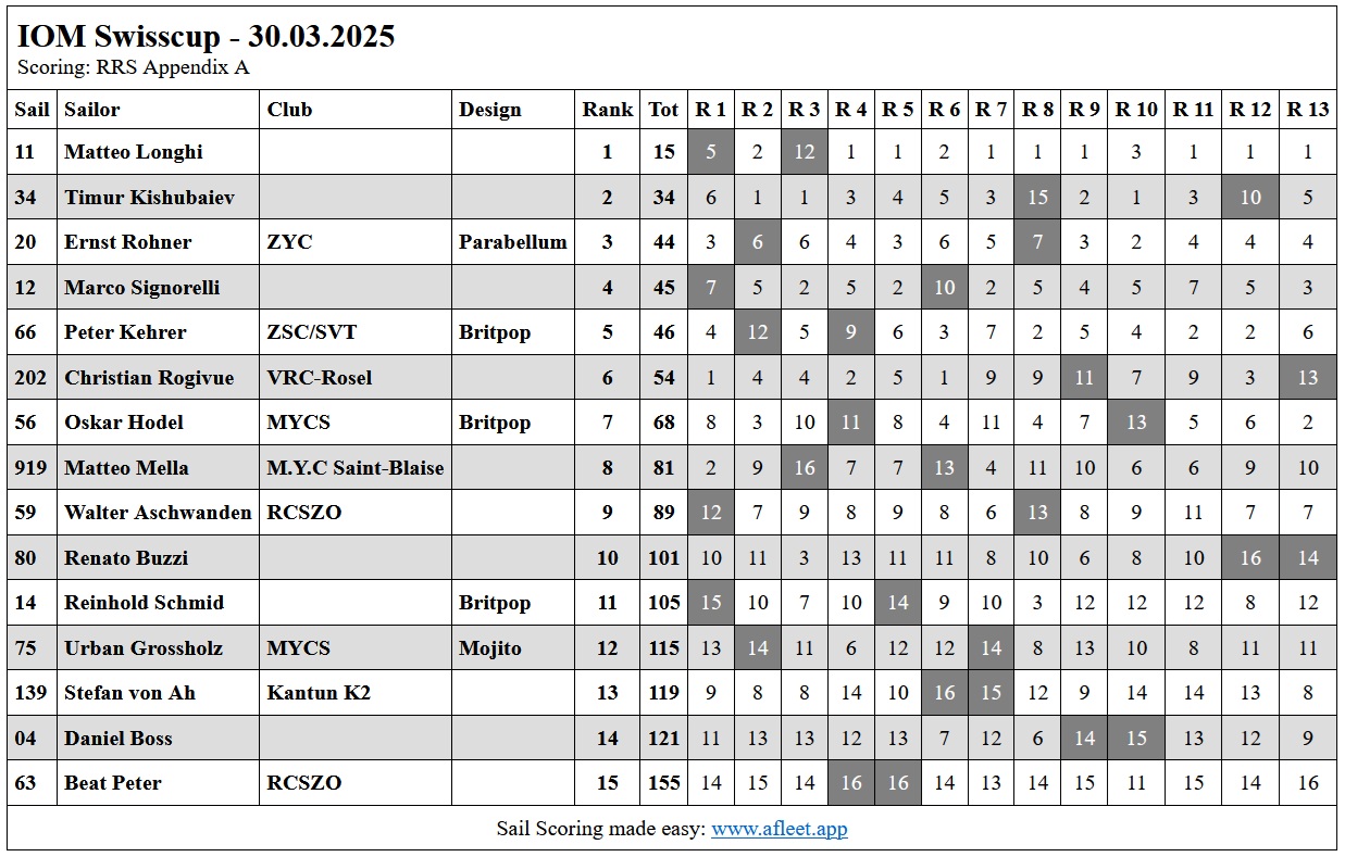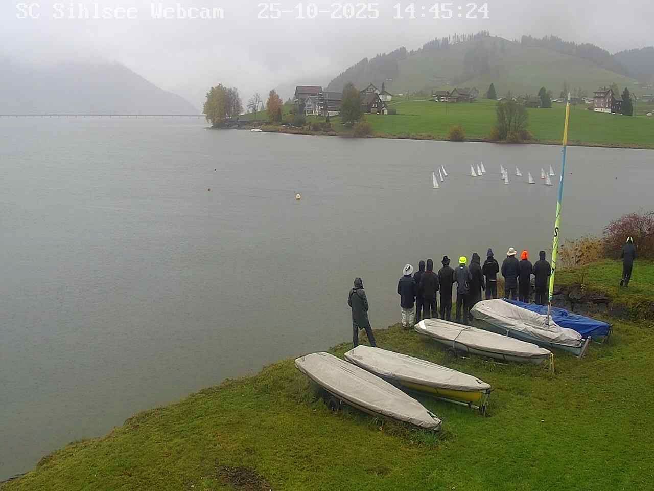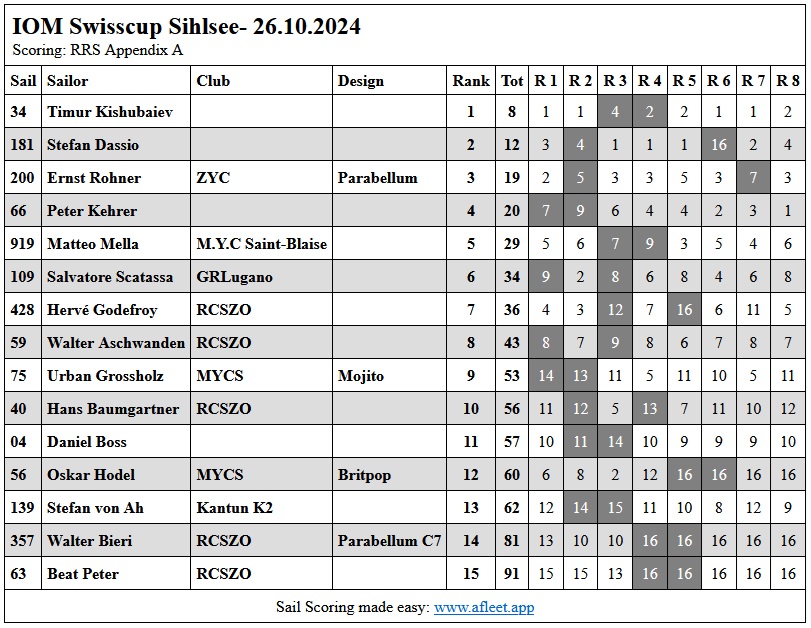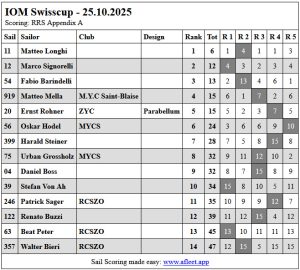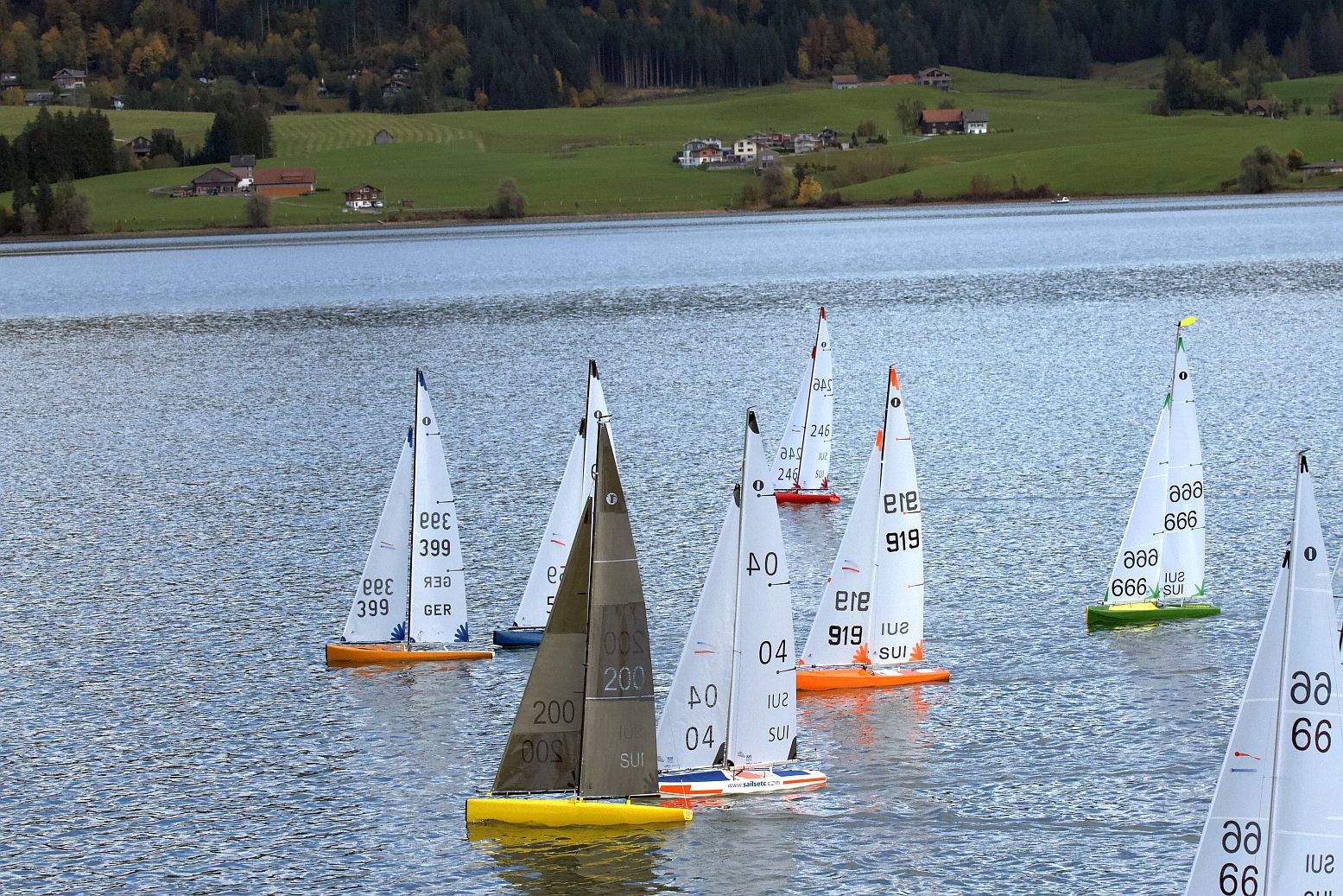 Zum letzten IOM Swisscup haben sich bei kalt/nassem Herbstwetter 14 Segler am Sihlsee auf dem SCS-Gelände eingefunden. Zuerst Regattafeld Aufbau und dann aufriggen bei frischen 6 Grad, etwas Sonne und noch kein Regen. Bis zum Eintreffen aller Teilnehmer hat es dann doch leicht zu regnen begonnen.
