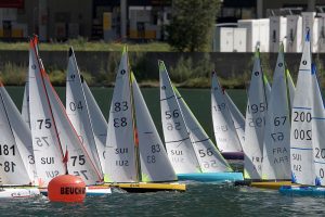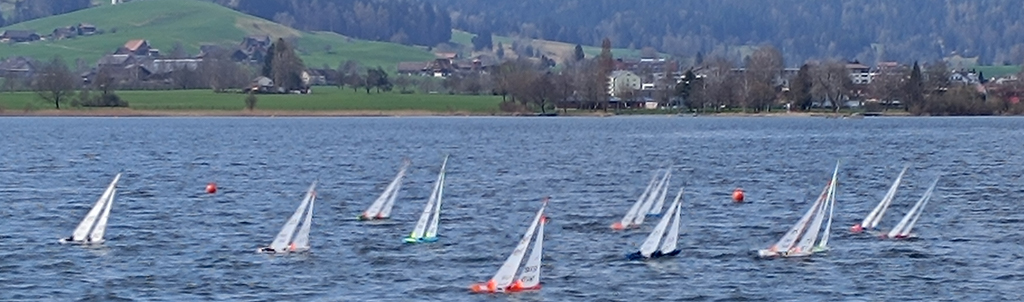 Mangels konstantem Wind und dann noch aus der falschen Richtung musste der Start mehrmals verschoben werden, weil der Kurs neu gesetzt werden musste. Insgesamt wurde der Kurs 4x verschoben, bis dann doch ein einigermassen akzeptabler Swisscup Regattakurs stand.