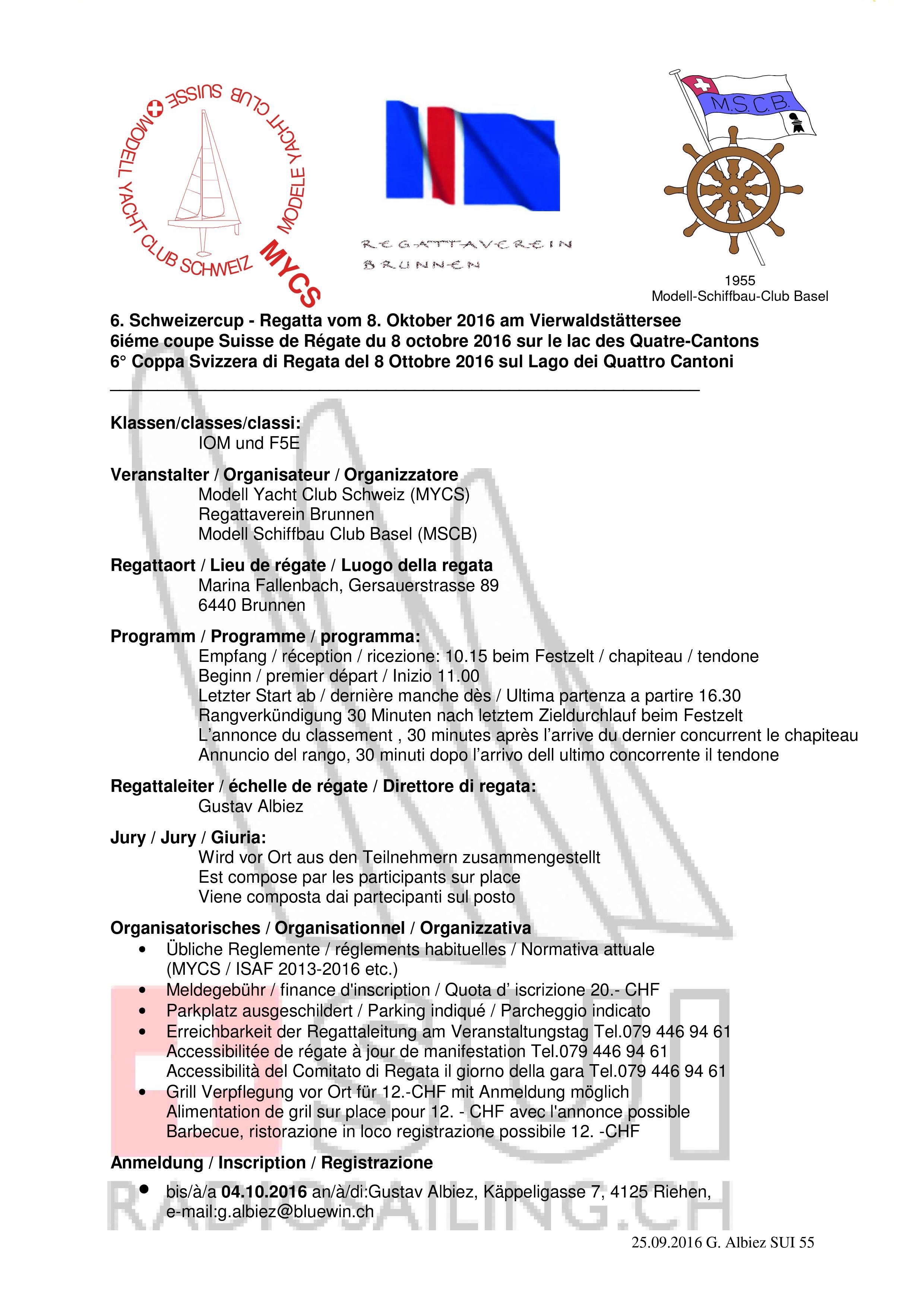 Wir danken dem Regattaverein Brunnen und seinen freiwilligen Helfern und Gusti Albiez für ihren Einsatz; wir hoffen auch nächstes Jahr wieder in Brunnen zu segeln.