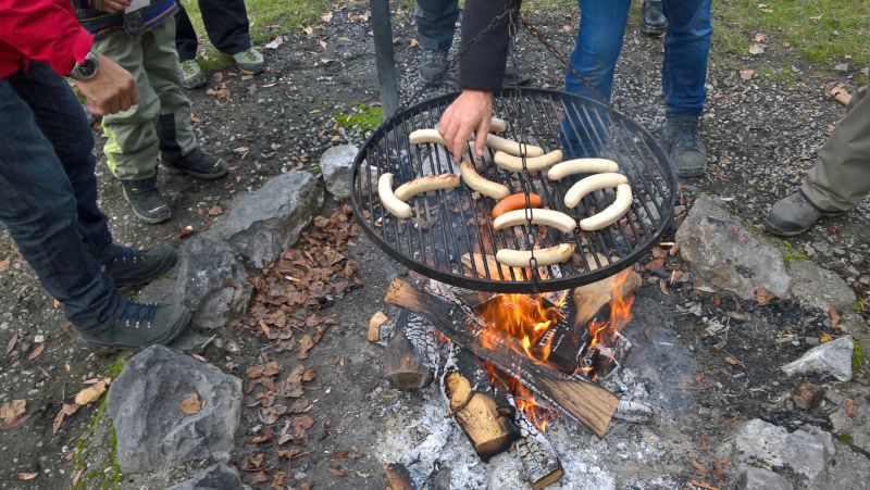 Die Segler wärmten sich zwischen den Regatten am Feuer auf und die feinen Ostschweizer Bratwürste vom RCSTU waren super.