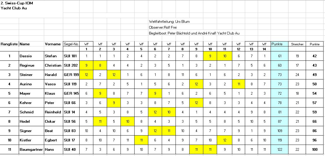 Herzlichen Dank an den Yacht Club Au für die Gastfreundschaft und die Unterstützung mit Peter Bächtold und André Knafl auf dem Begleitboot.