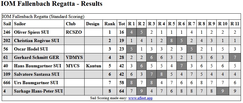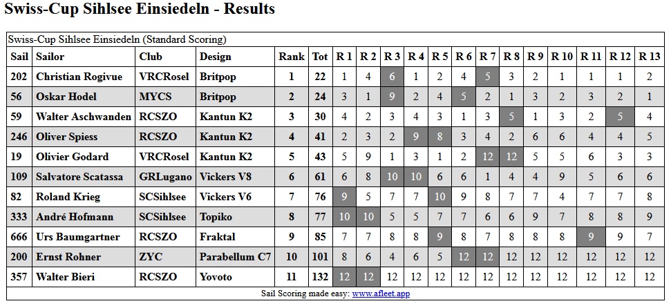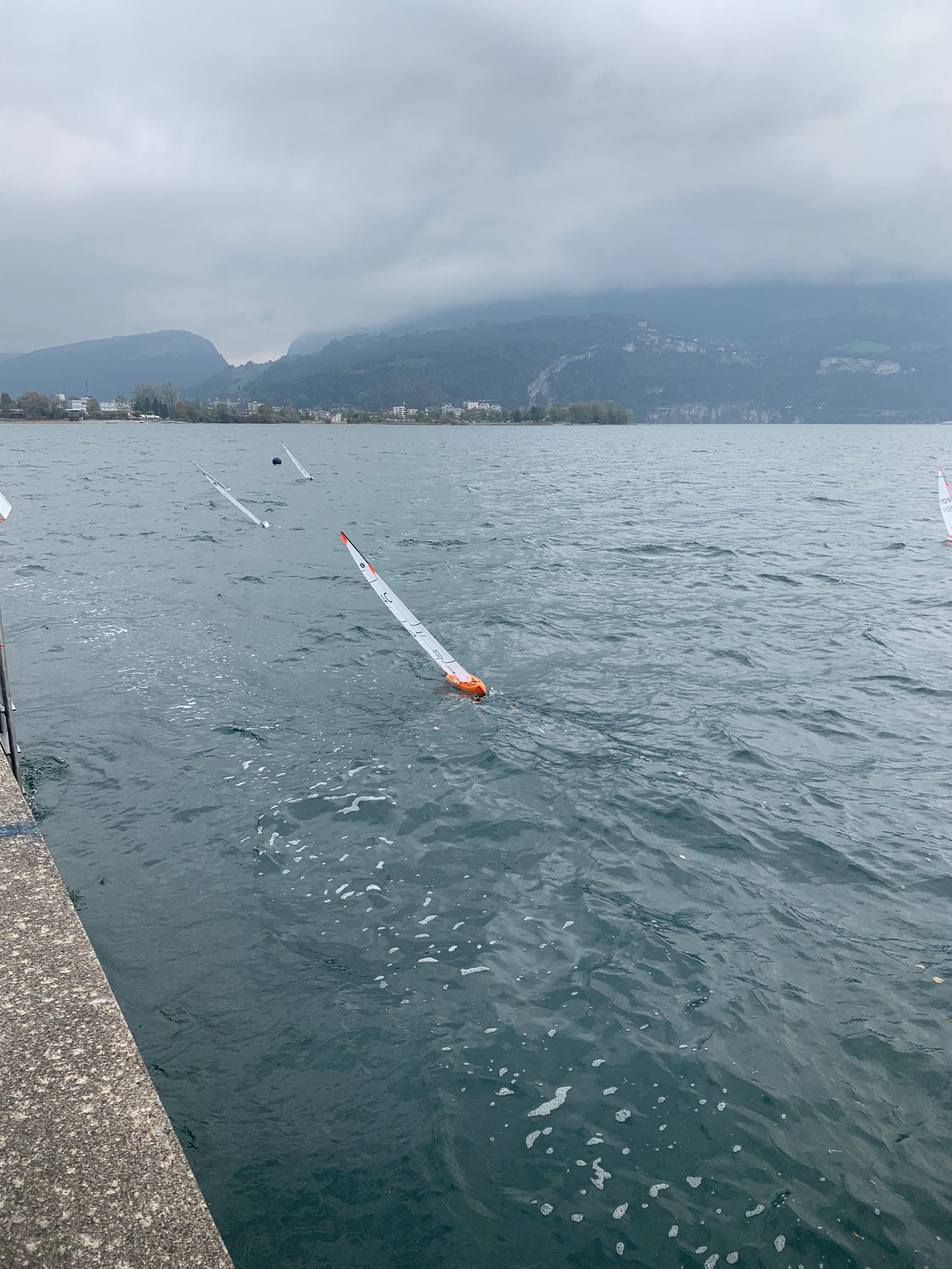 Insgesamt konnten 13 Läufe gesegelt werden, bevor dann um ca. 16:00 der Regattaleiter Hans Baumgartner den Tag abschloss.