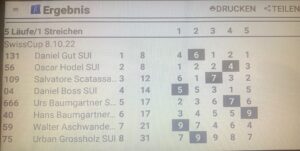 Mangels konstantem Wind und dann noch aus der falschen Richtung musste der Start mehrmals verschoben werden, weil der Kurs neu gesetzt werden musste. Insgesamt wurde der Kurs 4x verschoben, bis dann doch ein einigermassen akzeptabler Swisscup Regattakurs stand.